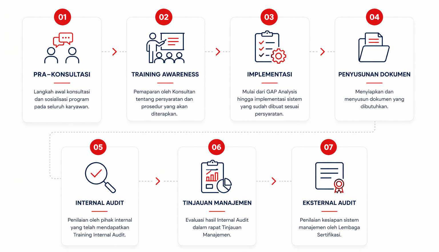 Konsultan ISO 27001 dapat membantu organisasi dalam memahami dan menerapkan standar ISO 27001:2022 dengan efektif. Dalam proses konsultasi, langkah-langkah penting meliputi training awareness, implementasi, penyusunan dokumen, internal audit, tinjauan manajemen, dan eksternal audit.